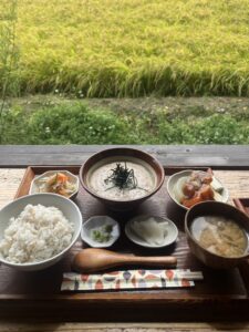 テラス席で目の前にひろがる一面の田畑を見ながら食べる